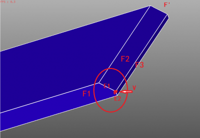 如下图所示,F1为薄壁面,但在图示位置相邻面在壁厚方向由面F2和F3构成,在拓扑上不能搜索出有效的闭合薄壁面链。