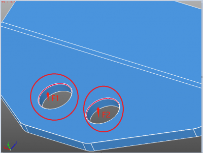 如下图所示,F1、F2为薄壁圆柱面,由于倒角面的存在,F1、F2不能被识别为有效的薄壁面,因此需先将倒角面清理掉。