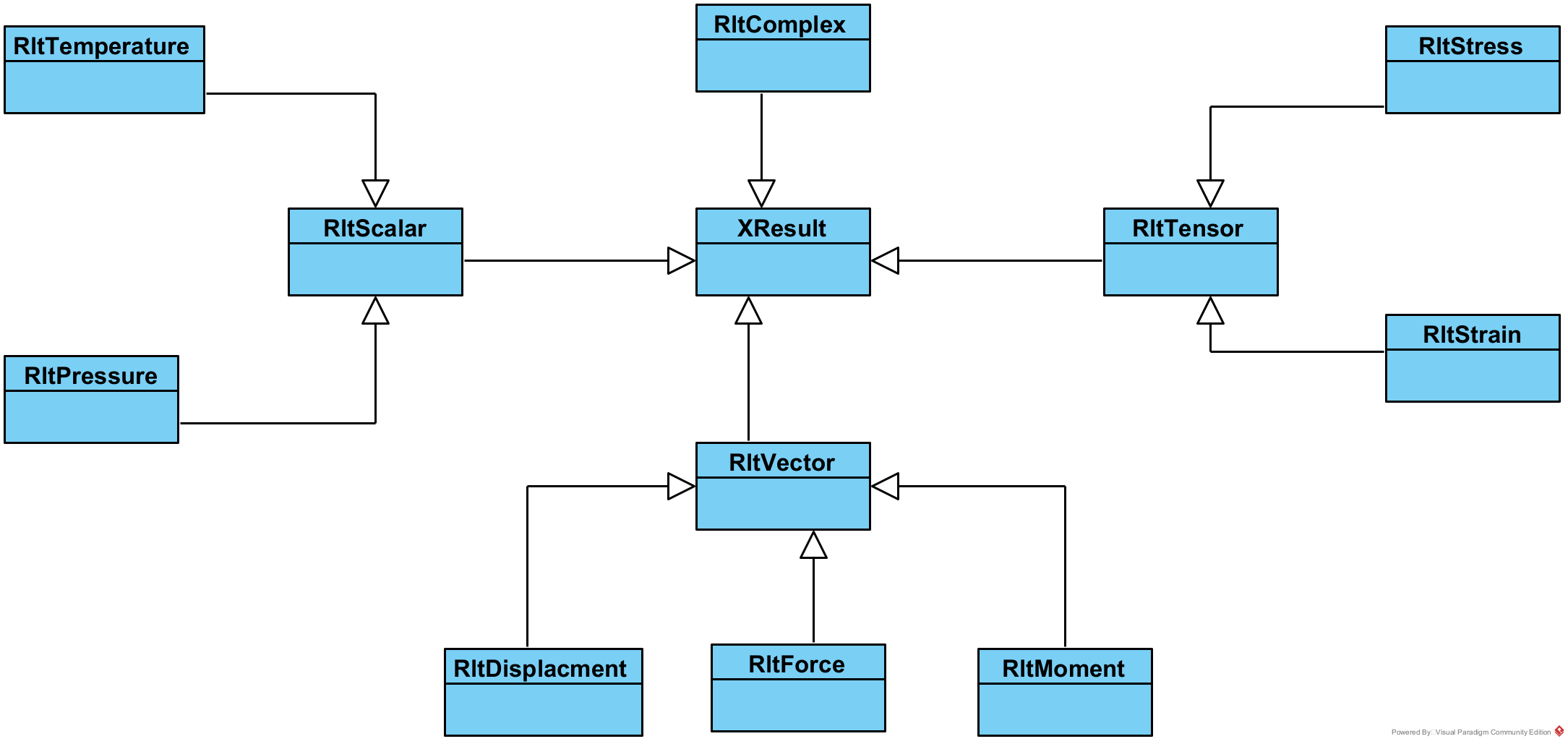 XT已经预置了位移、应力、应变、温度、压力等多个结果数据对象。它们的类图如下: